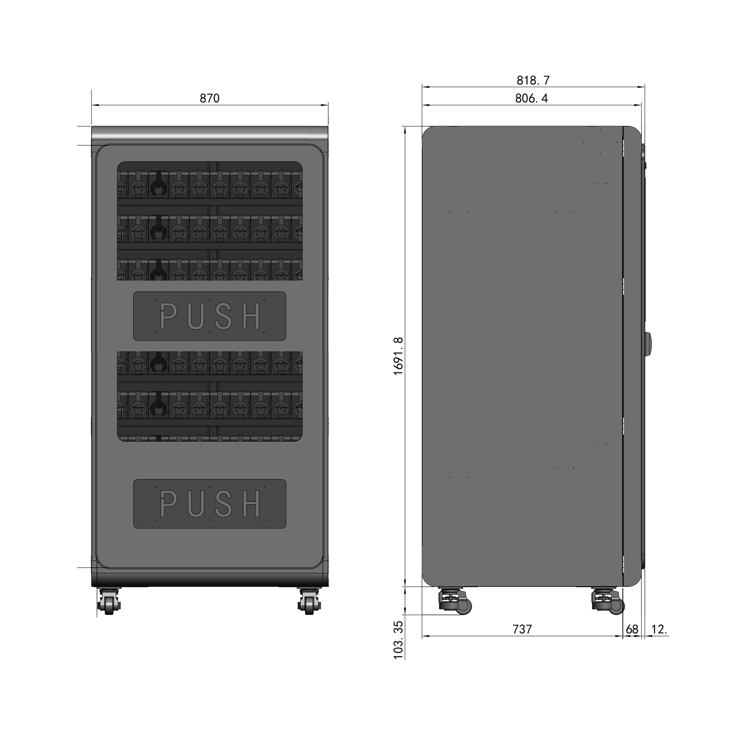 • 格口尺寸:每层10个货道,单个货道容量:15个20mm螺距